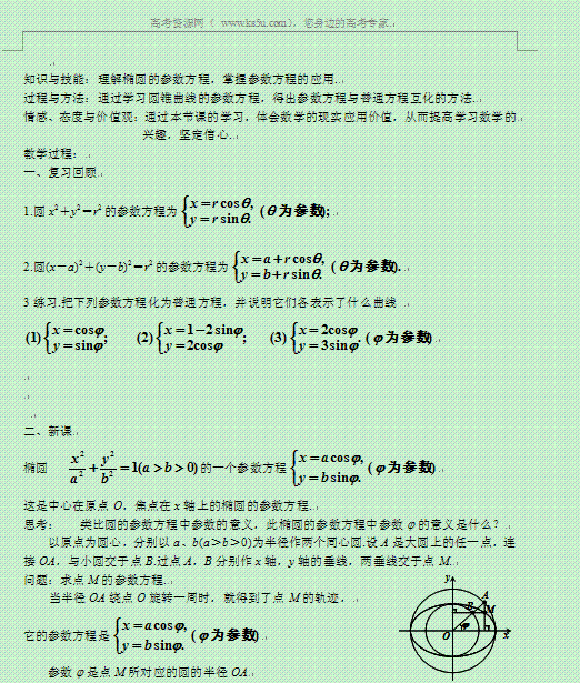 谷歌:湖南省蓝山二中高二数学(文科)学案:《第二讲 参数方程· 二、圆锥曲线的参数方程(一)》