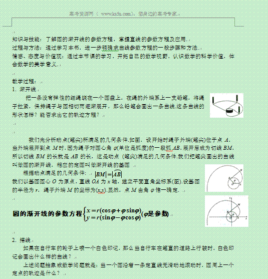 有道:湖南省蓝山二中高二数学(文科)学案:《第二讲 参数方程· 四、渐开线与摆线(一)》