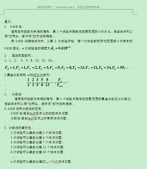 有道:湖南省蓝山二中高二数学(文科)学案:《第一讲 优选法· 五、其他几种常用的优选法》