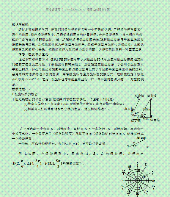 谷歌:湖南省蓝山二中高二数学(文科)学案:《第一讲 坐标系· 二、极坐标系》