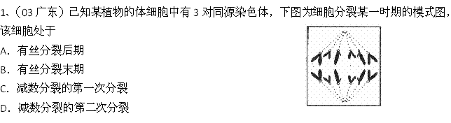 百度:2015高考生物专项训练第4周--遗传的细胞学基础 Word版含答案