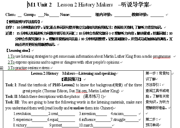谷歌:高中英语(北师大版必修1)导学案:Unit 2 lesson 2