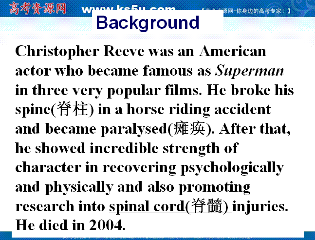 百度:高中英语(北师大版必修1)同步课件:Unit2 heroes-L4-Suoerhero2