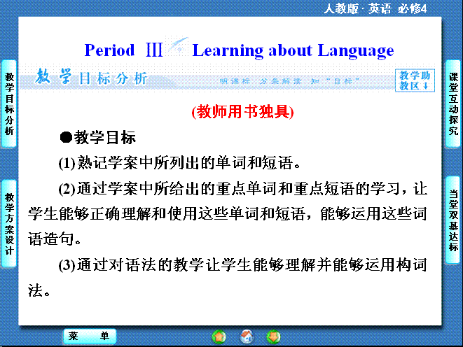 有道:2014秋高中英语(新人教版必修4)教学课件(目标分析+方案设计+自主导学):unit5PeriodⅢ