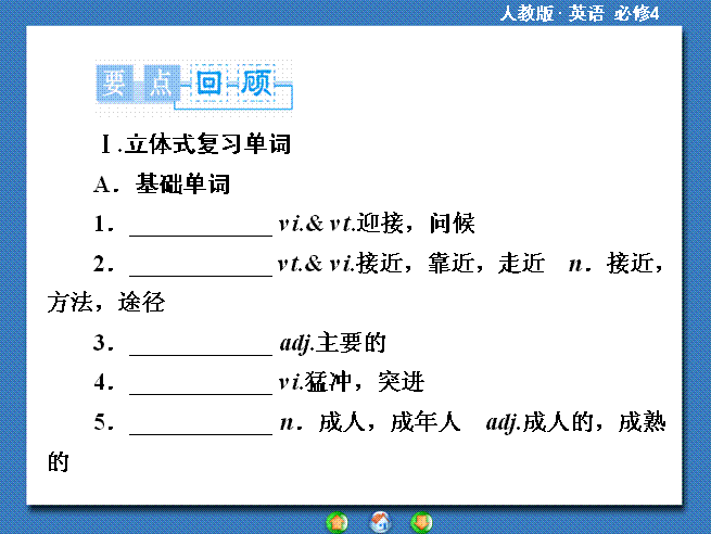 有道:2014秋高中英语(新人教版必修4)教学课件(目标分析+方案设计+自主导学):单元归纳提升4