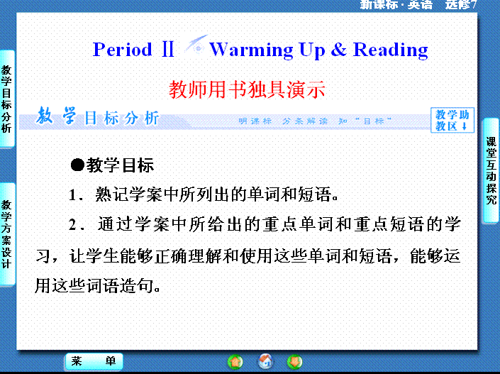 有道:2014秋高中英语(新人教版选修7)教学课件(目标分析+方案设计+自主导学):Unit 2-Period Ⅱ
