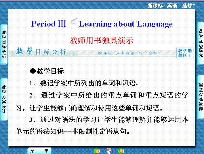 有道:2014秋高中英语(新人教版选修7)教学课件(目标分析+方案设计+自主导学):Unit 5-Period Ⅲ