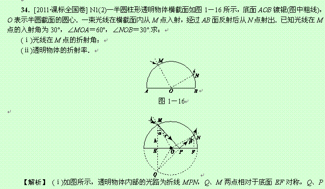 谷歌:《解析版》2011年高考物理(高考真题+模拟新题)分类汇编专题14:N单元 光学 电磁波 相对论 Word版含解析