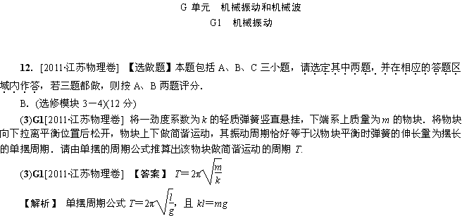 百度:《解析版》2011年高考物理(高考真题+模拟新题)分类汇编专题7:G单元 机械振波和机械波 Word版含解析