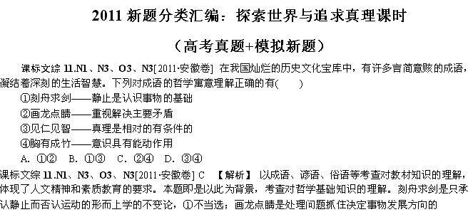有道:《解析版》2011年高考政治(高考真题+模拟新题)分类汇编:N 探索世界与追求真理 Word版含解析