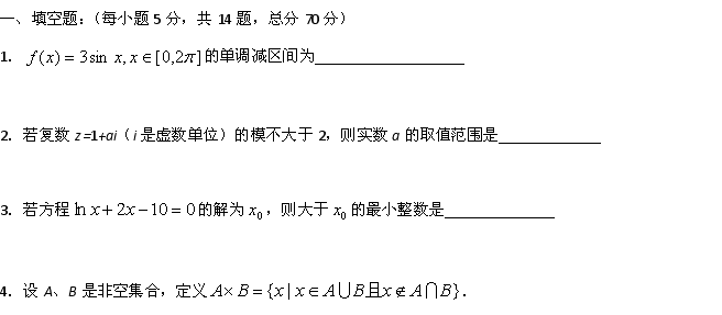 谷歌:《KS5U首发》江苏省扬州中学2015届高三8月开学考试 数学 Word版含答案