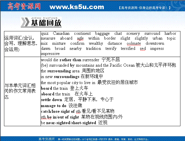 百度:2015年《南方新高考》高考英语(新人教版,广东通用)一轮总复习配套课件:必修3 Unit 5 Canada—“The True North”
