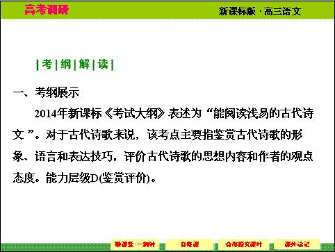 有道:《高考调研》2015届高考语文一轮复习课件:专题九 古代诗歌鉴赏1