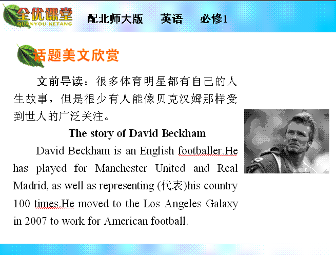 有道:2014年秋《全优课堂》高中英语(北师大版,必修一)同步课件:Unit 2 Heroes