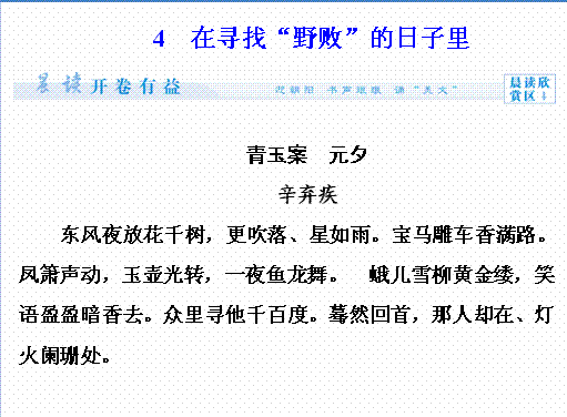 谷歌:《课堂新坐标,同步备课参考》2014-2015学年高二语文同步课件:1.4 在寻找“野败”的日子里(粤教版,选修《传纪选读》)