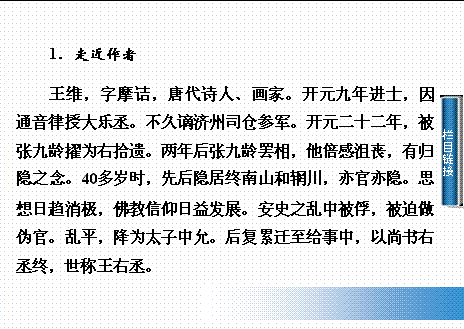 百度:《课堂新坐标,同步备课参考》2014-2015学年高二语文同步课件:1.1 王维诗四首(粤教版,选修《唐诗宋词元散曲选读》)