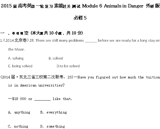 百度:2015年高考英语(外研版必修5)一轮复习素能过关测试:Module 6 Animals in Danger Word版含解析
