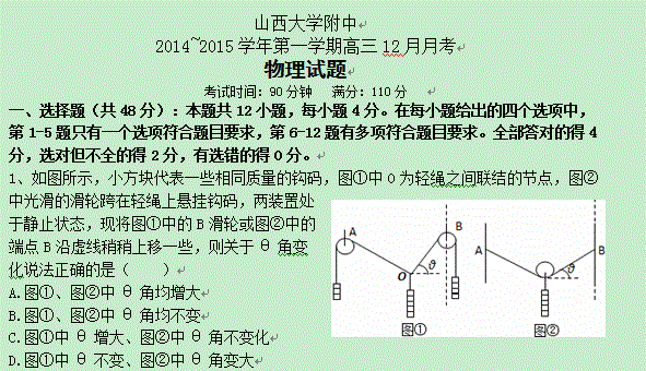 百度:《Ks5u首发》山西省山大附中2015届高三12月月考物理试题 Word版含答案