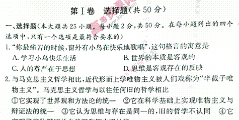 百度:《KS5U首发》湖南师大附中2014-2015学年高二上学期第三次阶段性检测 政治 扫描版含答案