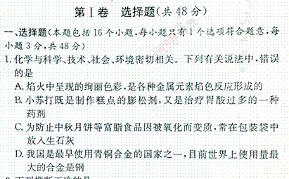 百度:《KS5U首发》湖南师大附中2014-2015学年高一上学期第三次阶段性检测 化学 扫描版含答案