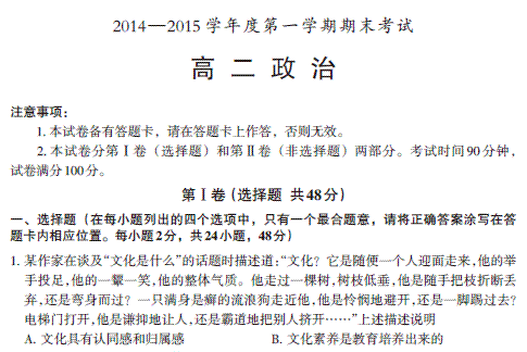 有道:《KS5U首发》辽宁省锦州市2014-2015学年高二上学期期末考试 政治 PDF版含答案