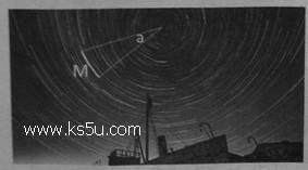 c.照片拍摄地点在赤道附近 d.图中天体都绕南极点转动