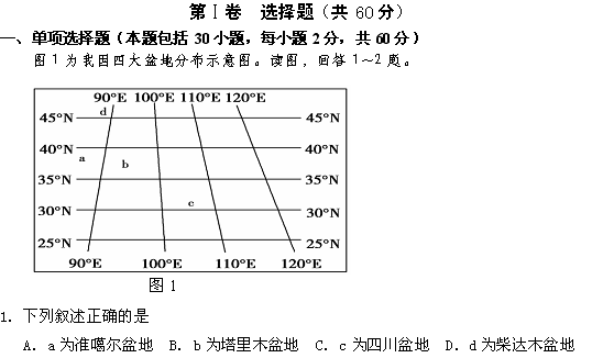 百度:《KS5U首发》辽宁省大连市2014-2015学年高二上学期期末考试 地理(文) Word版含答案
