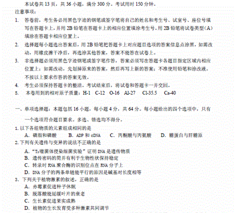 有道:广东省广州市2015届高三1月模拟调研理综试题 扫描版含答案