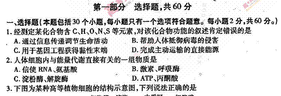 谷歌:《KS5U首发》河南省周口市2015届高三期末抽测调研试题 生物 扫描版含答案