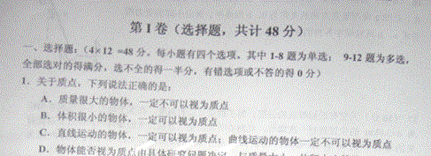 百度:山西省康杰中学2014-2015学年高一上学期期末考试物理试题 扫描版含答案