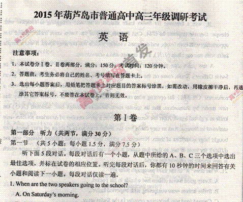 百度:《KS5U首发》辽宁省葫芦岛市2015届高三上学期期末考试 英语 扫描版含答案