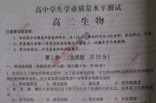 百度:《KS5U首发》江苏省东台市2014-2015学年高二上学期期末考试 生物 扫描版含答案