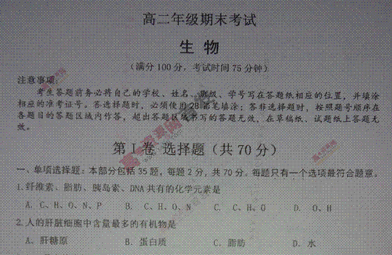 百度:《Ks5u首发》江苏省宿迁市2014-2015学年高二上学期期末考试 生物 扫描版含答案