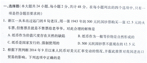 百度:《Ks5u首发》浙江省杭州市2015届高三第一次模拟考试政治试卷 扫描版含答案