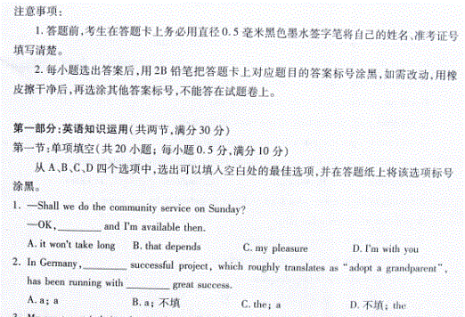 百度:《Ks5u首发》浙江省杭州市2015届高三第一次模拟考试英语试卷 扫描版含答案