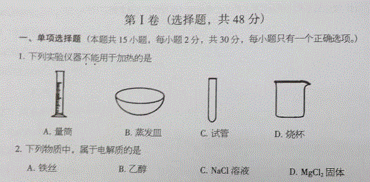 百度:广东省东莞市2014-2015学年高一上学期期末考试化学试题(B卷) 扫描版含答案