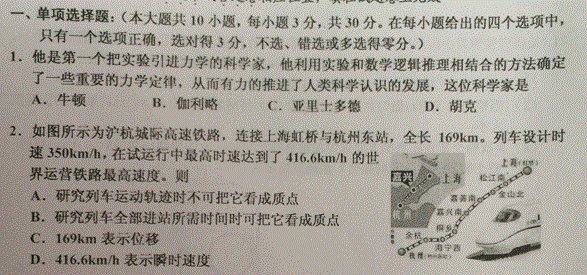 百度:《Ks5u首发》浙江省嘉兴一中2014-2015学年高一上学期期末考试物理试卷 扫描版含答案