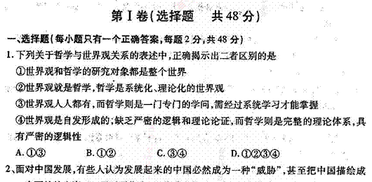 百度:《KS5U首发》河南省周口市2014-2015学年高二上学期期末抽测调研试题 政治 扫描版无答案