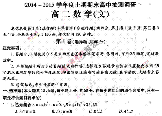谷歌:《KS5U首发》河南省周口市2014-2015学年高二上学期期末抽测调研试题 数学(文) 扫描版含答案