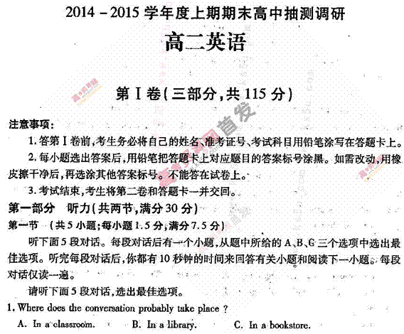 百度:《KS5U首发》河南省周口市2014-2015学年高二上学期期末抽测调研试题 英语 扫描版含答案