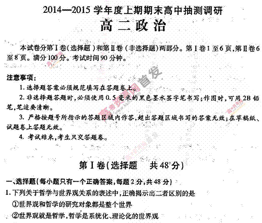 有道:《KS5U首发》河南省周口市2014-2015学年高二上学期期末抽测调研试题 政治 扫描版含答案