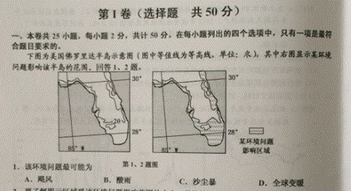 百度:《Ks5u首发》浙江省嘉兴市2015届高三上学期期末考试地理试卷 扫描版含答案