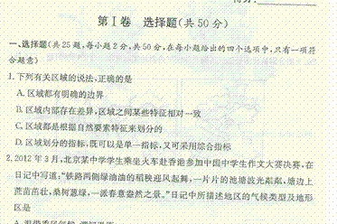 百度:《Ks5u首发》湖南师大附中2014-2015学年高二上学期期末考试 地理(理) 扫描版含答案