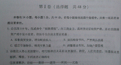 百度:《Ks5u首发》福建省莆田市2015届高三毕业班教学质量检查历史试卷 扫描版含答案