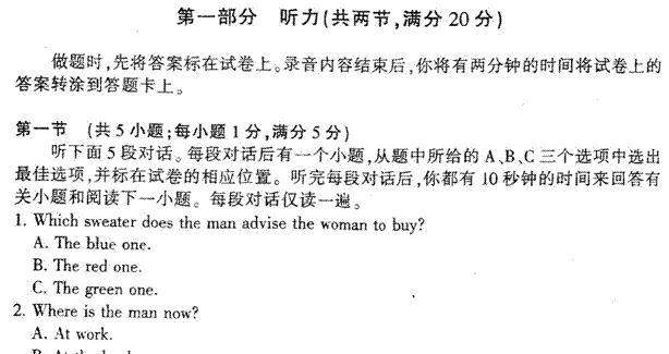 百度:江苏省南通市2015届高三第一次调研测试 英语 扫描版含答案