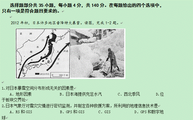 百度:《Ks5u首发》浙江省绍兴一中2015届高三下学期回头考试卷文综地理试题 Word版含答案