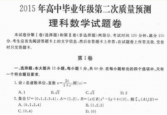 百度:《Ks5u首发》河南省郑州市2015届高三第二次质量预测 数学(理) 扫描版含答案