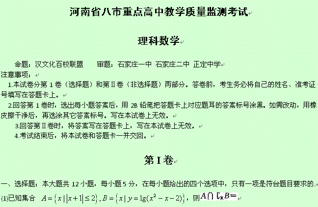 百度:《Ks5u首发Word版》河南省八市重点高中2015届高三教学质量监测考试 数学(理) Word版含解析