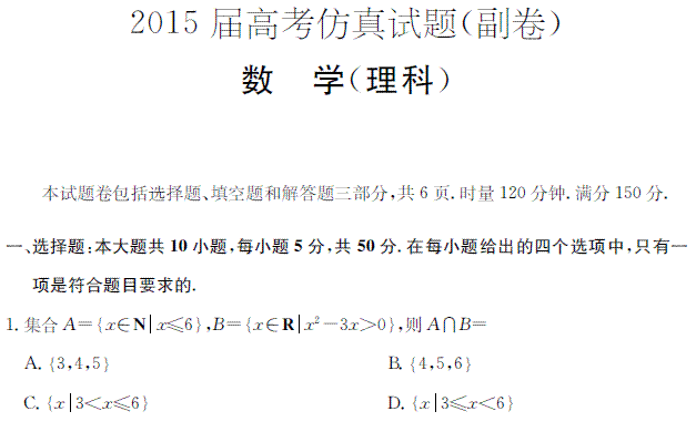 谷歌:《Ks5u首发》湖南省2015届高三高考仿真试题 数学(理) PDF版含答案