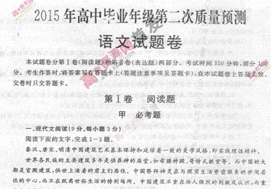 百度:《Ks5u首发》河南省郑州市2015届高三第二次质量预测 语文 扫描版含答案